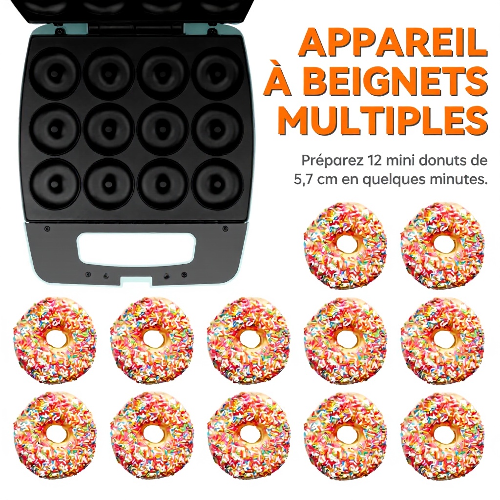 - Capacité de 12 mini beignets par cuisson pour répondre aux besoins des familles